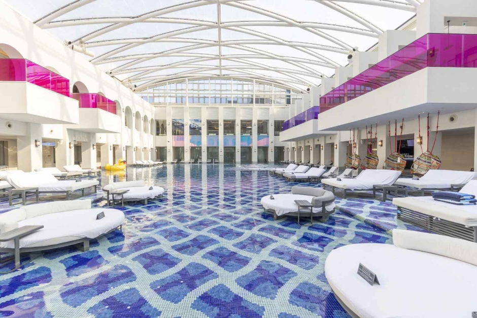 シメルは仁川(インチョン)広域市中区永宗島にあるパラダイスシティ内に2018年9月にオープンしたスパ施設です。シメルは空を意味するフランス語「ciel」と海を意味する「mer」を組み合わせて付けられた名前です。約13,000㎡(4,000坪)規模で、約2,000人まで同時に利用することができます。今大人気のラグジュアリーアクアスパゾーンではプールだけでなく、ダイナミックなLEDメディアアートと差別化されたコンセプトのプールパーティーが楽しめます。