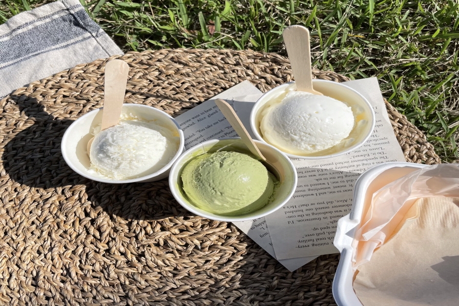 サルル牧場(モクチャン)は、明るくきれいな雰囲気であちこちに作ってある大きな窓越しに水田と畑が眺められるカフェです。看板メニューは、抱川の牧場原乳で作った手作りのソフトアイスクリームと手作りのカイマクです。他にも韓国風のトッピングをのせた黄な粉&牧場牛乳アイスクリームがあります。