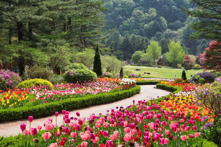 春になるとアチムゴヨ樹木園では多くの花が咲き乱れ、絵のような景色を見ることができます。春花フェスタ(旧アチムゴヨ樹木園 春のお出かけ 春花祭り)では、チューリップ、ツツジ、スイセンの群生地の他、モクレン、チンダルレ(カラムサラキツツジ)、梅、ケナリ(チョウセンレンギョウ)、桜など、さまざまな春の花が満開になった様子を楽しめます。