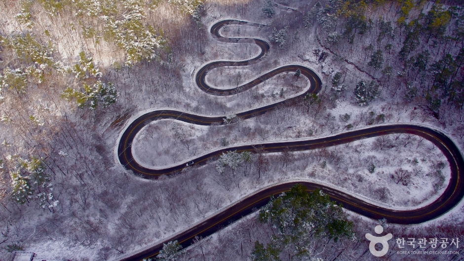 丹陽(タニャン)宝発峠(ポバルチェ)は、小白山(ソベクサン)北麓にある標高540メートルの峠道で、コドゥノミ峠とも呼ばれています。Sの字のように曲がりくねった道で、春は野花、秋は紅葉で美しい景色が広がり、ドライブをしたり展望台に駐車して写真を撮ったりするのにおすすめのコースです。近くに救仁寺(クインサ)と温達(オンダル)観光地があるので、そちらもあわせて観光するといいでしょう。