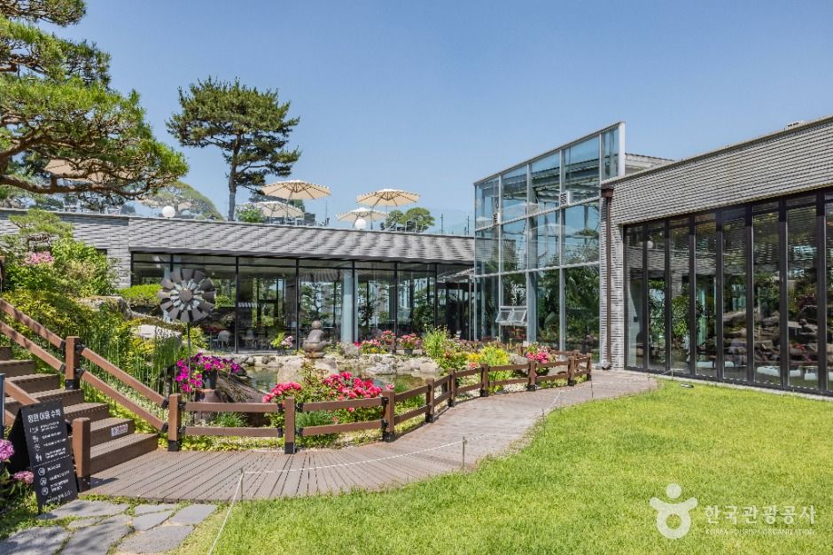 ベーカリーカフェ「GONGGAN(コンガン)」は庭園とカフェを融合させた空間で、2022年11月にオープンしました。1年中、青々とした松と季節の花々が咲き誇り、いつ訪れても美しい景色を眺めることができます。5月のツツジや7月から9月にかけてのアジサイの開花時期がもっとも見どころが多く、特に「アジサイ祭り」の開催時期には多くの観光客が訪れます。「GONGGAN」の看板メニューはモンブラン、プレーンスフレ、紅麹米粉パン、塩パンなどで、一番の人気メニューは紅麹米粉パンです。紅麹米とは通常の白米を紅麹菌で発酵・培養して作られた米で、紅麹米粉パンにはこの米粉が使われています。一般的なミルク食パンよりもヘルシーでもちもちとした食感が特徴です。