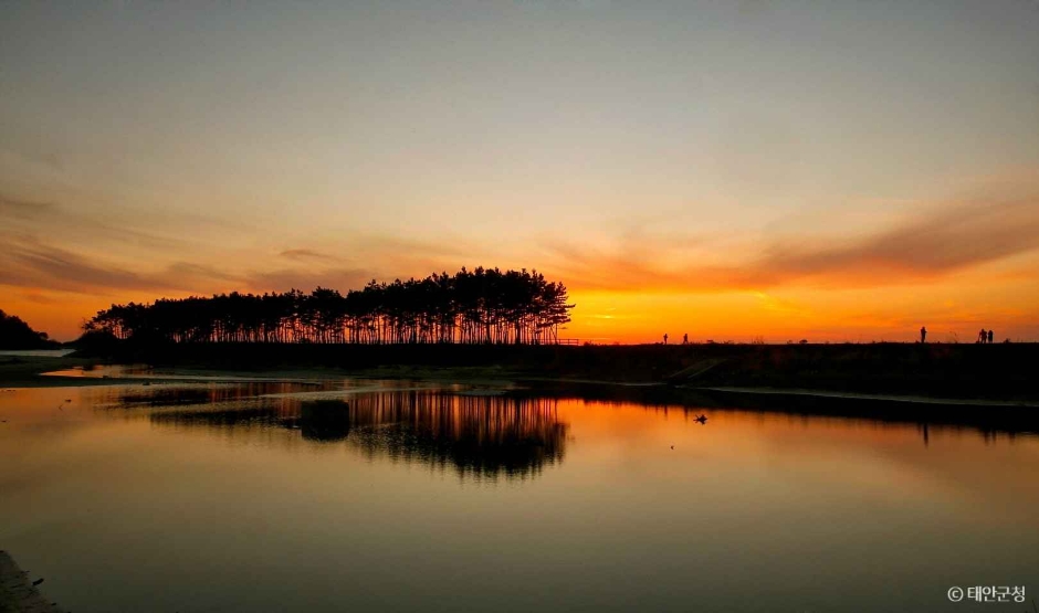 雲礖海辺(ウニョへビョン)は、黄海の安眠島(アンミョンド)に位置している海辺です。海岸砂丘とトクサルが自然の形そのまま残っているため美しい景色を誇ります。満潮のときは海辺の南に松を植えた防波堤の内側に海水が溜まるためまるで島のように浮かび上がり、日の入りの時は夕焼けと共に壮大な風景を醸し出します。夏場には海水浴場が開場されます。