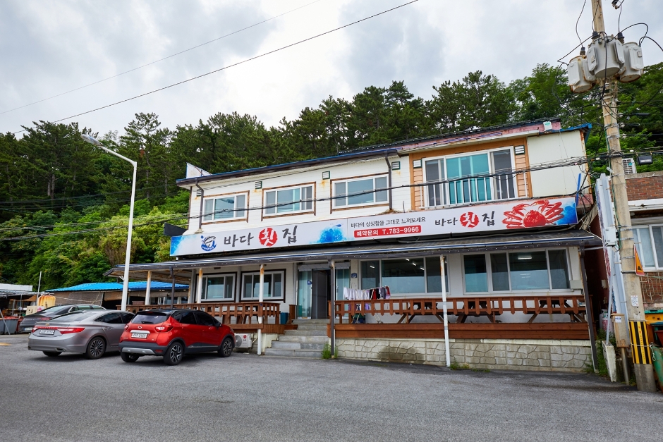 蔚珍港の近くにある海鮮の店で、ズワイガニと刺身の盛り合わせが主力メニュー。メイタガレイ、マダイ、スズキなど様々な魚の刺身が食べられ、その他魚介類としてはナマコ、ホヤ、サザエ、帆立貝などがあります。メインメニューはズワイガニとズワイガニ+刺身セット。セットを注文するとズワイガニはよく蒸して出され、刺身は食べやすいように種類別に薄く切って出されます。その他、捕れたての魚やイカなどを細かく切り、タレと冷たいスープを加えた汁料理である刺身入り冷製スープを提供しています。主に夏に食べられ、韓国では海に隣接する地域の海鮮食堂はたいていこのメニューを扱っています。地域によって味や食べ方は異なりますが、刺身と各種野菜などを器に盛り、味付けした冷たいスープを注いで食べます。甘酸っぱさが絶品です。刺身は時期によって相場が変わり、価格が変動する場合があるので注意しましょう。