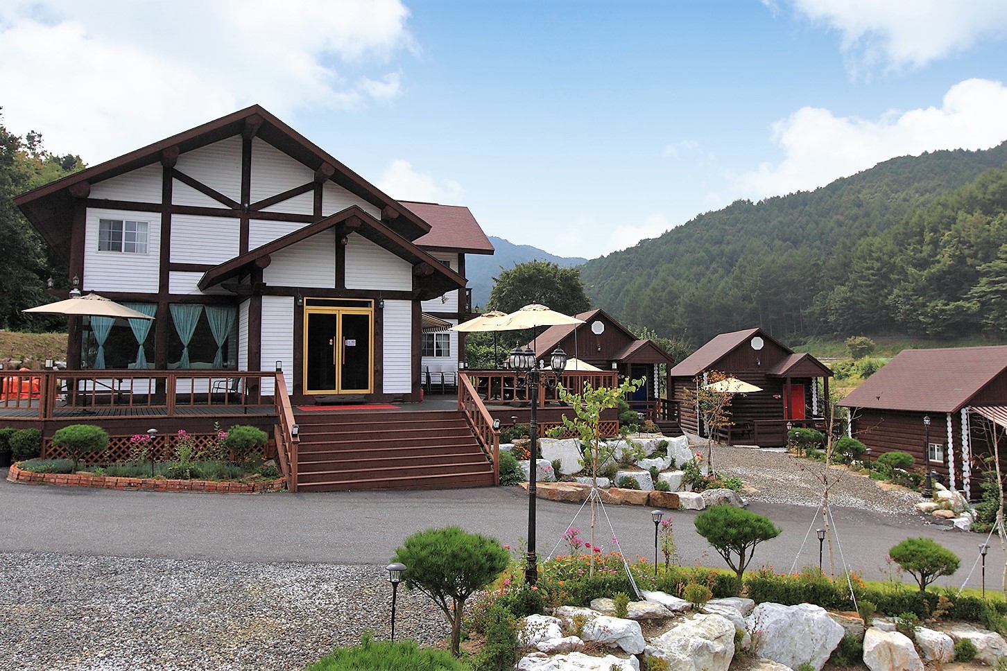 「ムーンリバー」は、徳裕山の中腹に位置する環境にやさしい丸太のペンションであります。夏場の平床でゆっくり休みなが、楽しく水遊びができ、夕方には渓谷の周辺を散歩したらホタルに出会うことができます。車で5~10分の距離に茂朱の九千洞渓谷、徳裕山の国立公園、茂朱リゾートがあり、20分の距離にテコンドー公園があります。車から2分の距離にあります居昌の白頭大幹の生態教育場内の幼児森体験院は、子供連れの家族旅行客に有益であります。