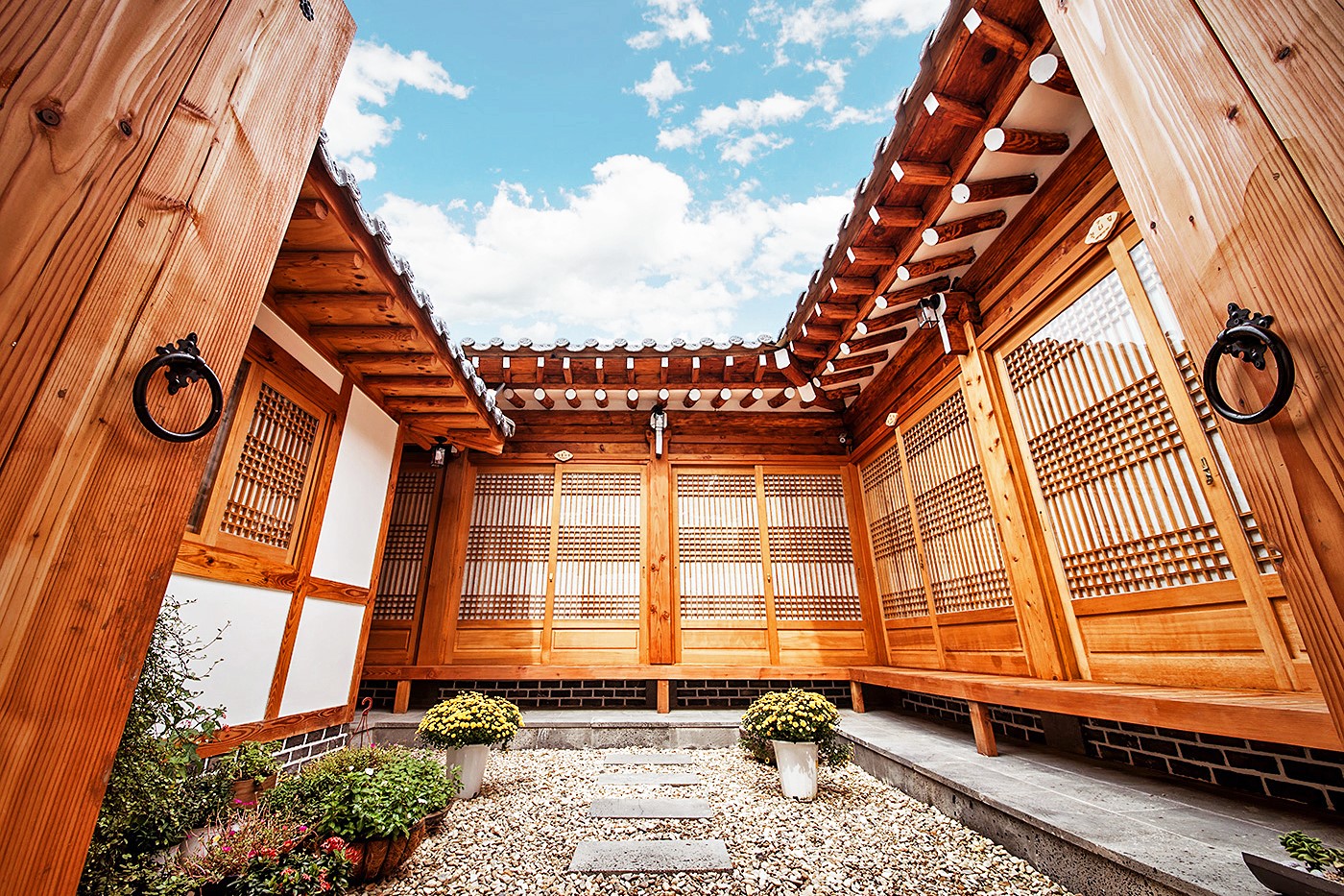 「チョンガ韓屋」は、道一つを挟んで全州韓屋村と向かい合っている韓屋ステイであります。伝統韓屋の美しさにモダンな安らぎが加わり、ゆったりと泊まれます。客室の内部は国産のヒノキと黄土で使って飾られています。特に、ヒノキ部屋は壁と天井まで全てヒノキで仕上げて、楓部屋と銀杏部屋には屋根裏があります。徒歩で慶基殿、殿洞聖堂、全州郷校、ジャマン壁画村などの全州韓屋村の主要観光地を楽しめます。