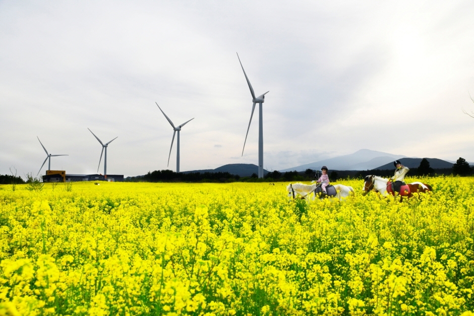 ポニー体験公園では済州(チェジュ)の馬文化を楽しみながら理解し、体験することができます。朝鮮時代、最高の馬を飼育する甲馬場があった加時里村(カシリマウル)には600年の牧畜文化の歴史が刻み込まれています。ポニー博物館は農林部が支援する「新文化空間造成事業」の一環としてつくられたもので、乗馬場、カフェ、ゲストハウス、キャンプ場、アートショップ、体験場などがあり、複合文化空間としての役割を果たしています。