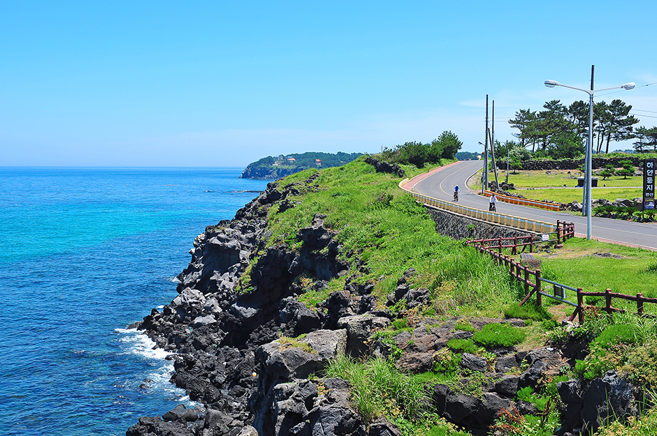 済州空港から10キロメートルほど行くと景色の美しさで知られる下貴(ハグィ)涯月(エウォル)海岸道路があります。下貴里のカムンドン浦から始まる海岸道路沿いにはオーシャンビューのカフェやペンションが並んでいます。この道路は済州オルレ道16コースの一部とも被っており、サイクリングやトレッキングの名所にもなっています。道路沿いには旧厳浦、ナムドリ休憩所、新厳里防波堤、高内浦、タラク休憩所、クンバウィオルグルなどの名所が多く、美しい風景を眺めることができます。
