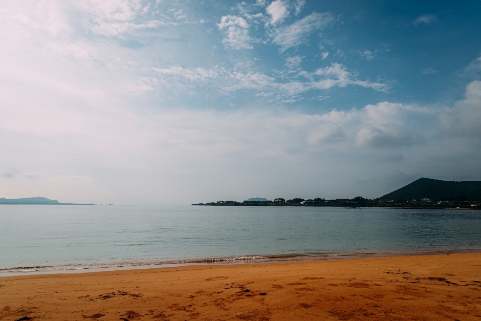 済州で一番美しいと言われる下道里の海岸道路際に位置する海水浴場。済州の他の海水浴場に比べ静かで、広い砂浜と浅く澄んだ海があり、和やかな景観が広がる。波が穏やかなのでシュノーケリングやカヤックなどの海洋レジャーが体験でき、バラエティ番組『食いしん坊とひげ面』のRAINとノ・ホンチョルのように静かに簡易テーブルとイスを広げてコーヒーを飲んでもよい。