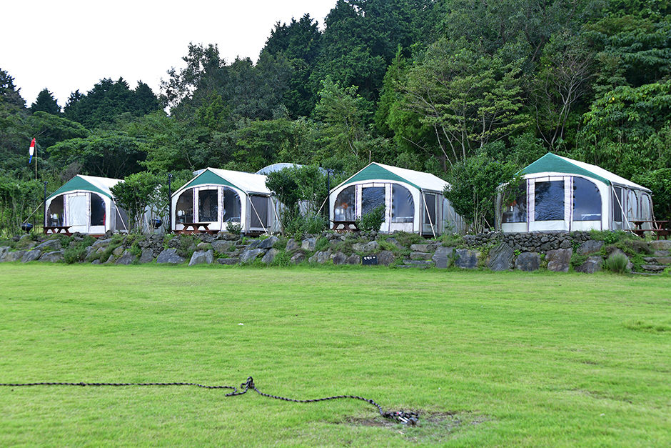 ベストヒルキャンプ場は、「済州(チェジュ)の肺」と呼ばれるコッチャワル森の中のパノンオルム(側火山)の麓にあります。ここでは、済州にしかない森のコッチャワル(石の多い土壌にシダ類が自生してできたジャングルのような森)を思いっきり体験しながらキャンプができます。済州空港から20~30分ほどのところにあるので、近くの有名な観光スポットを訪れるにも便利です。ペンション、グランピング場、ドローンゲーム場、3D体験場、熱気球体験場など多彩な宿泊・体験施設で構成され、楽しめる体験が満載です。ペンションは、トンベク(ツバキ)、ハーブ、瞑想、ファミリールーム、体験ルームなどのタイプがあり、人数に合わせて選べます。グランピング場はテントごとにバスルームとトイレも付いていて、快適なグランピングが楽しめます。熱気球体験は、ただ乗るだけでなく離陸と着陸の作業にも参加できるので、より特別です。子ども向けの広々とした芝生の遊び場があり、夏には日よけの幕が設置されるプールも設営されるので、真夏に時間が経つのも忘れて遊ぶことができます。周辺の観光スポットに、エコランド、済州石文化公園、咸徳海水浴場、サリョニ森の道などがあります。